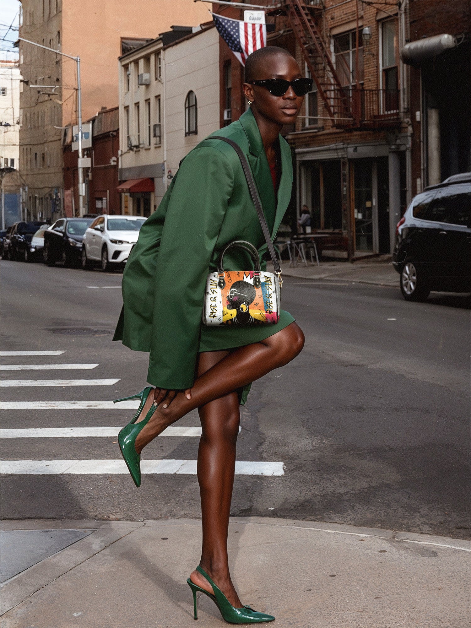 Made from premium vegan leather with a structured silhouette, it’s designed to carry your small essentials—like cards, keys, lip gloss, and earbuds—without weighing you down.