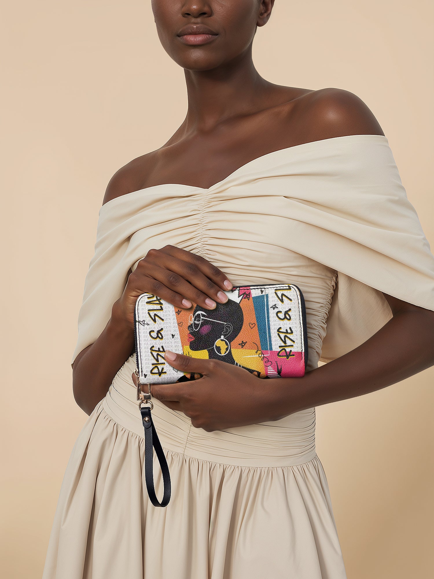 The secure zipper closure keeps everything safe, while the detachable wrist strap offers effortless carrying—perfect for work, travel, or a chic night out.