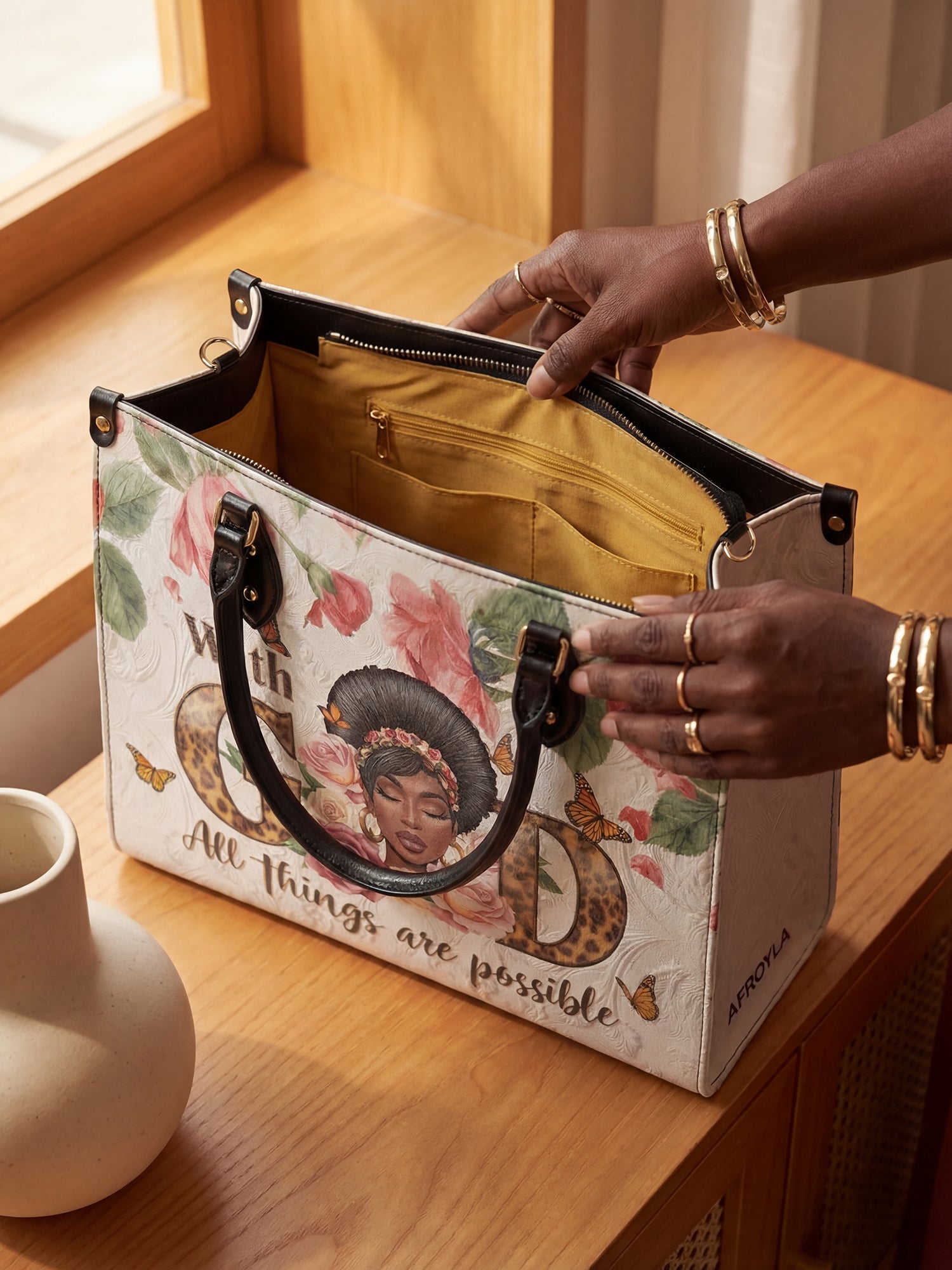 The Zanira Leather Handbag is your daily reminder that faith looks this good. With floral strength, fierce grace, and a crown of confidence, she whispers a simple truth everywhere you go: With God, all things are possible. Carry her like the testimony you are—bold, beautiful, and completely covered.